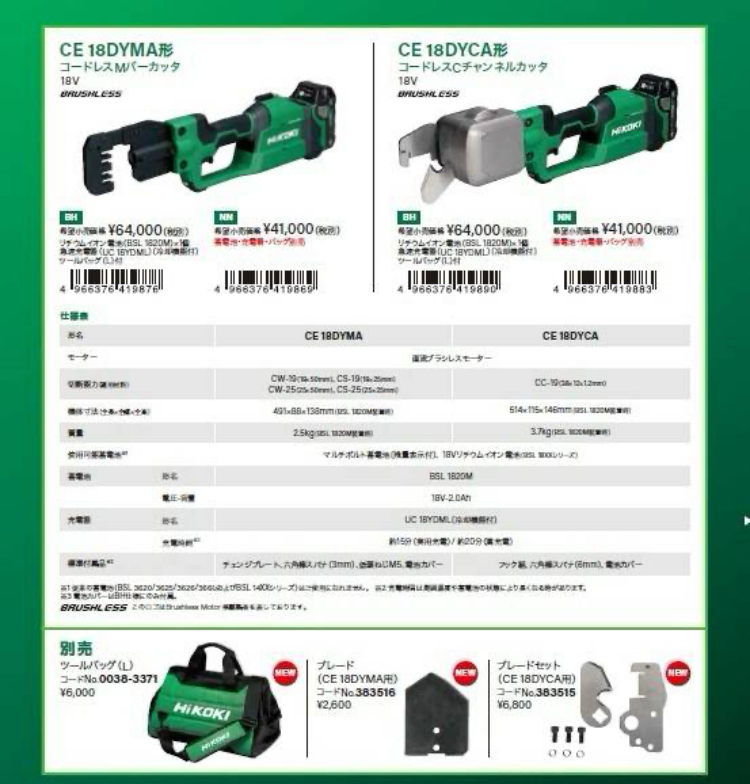 ハイコーキからMバーカッタCE18DYMA、CチャンネルカッタCE18DYCAが新発売!